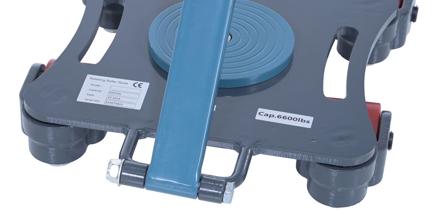 Steel Multi Direction Machinery Skate 12 In. Length x 12 In. Width x 4-7/16 In. Height 6,600 Lb. Capacity Blue and GraySometimes moving heavy equipment can be a difficult process. But, with a machinery skate things get a whole lot easier! The high capacity design lets the user transfer large, heavy, and oversized loads without the need of costly industrial lifting equipment. With the skates’ compact size; multiple skates can be used under a single piece of equipment giving the user complete control of the movement during transport. Blue and gray powder coat finish. Hardware is included.