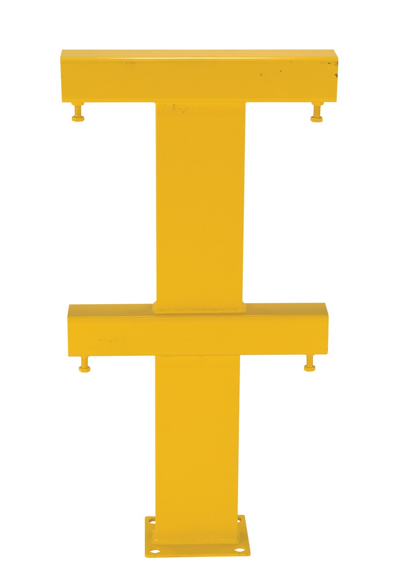 Steel Modular Guard System Straight Post 2 Rail 7-5/8 In x 18 In. x 36 In YellowModular guard system can be ordered to fit almost any application. Designed for quick and easy assembly. Railing sections are installed and secured to each post with a single bolt. Select from different railing lengths to custom fit your application. Railing systems are made from heavy-duty square steel tubing. Wall mounting posts may be used to secure guard assembly to a wall. All components old separately.