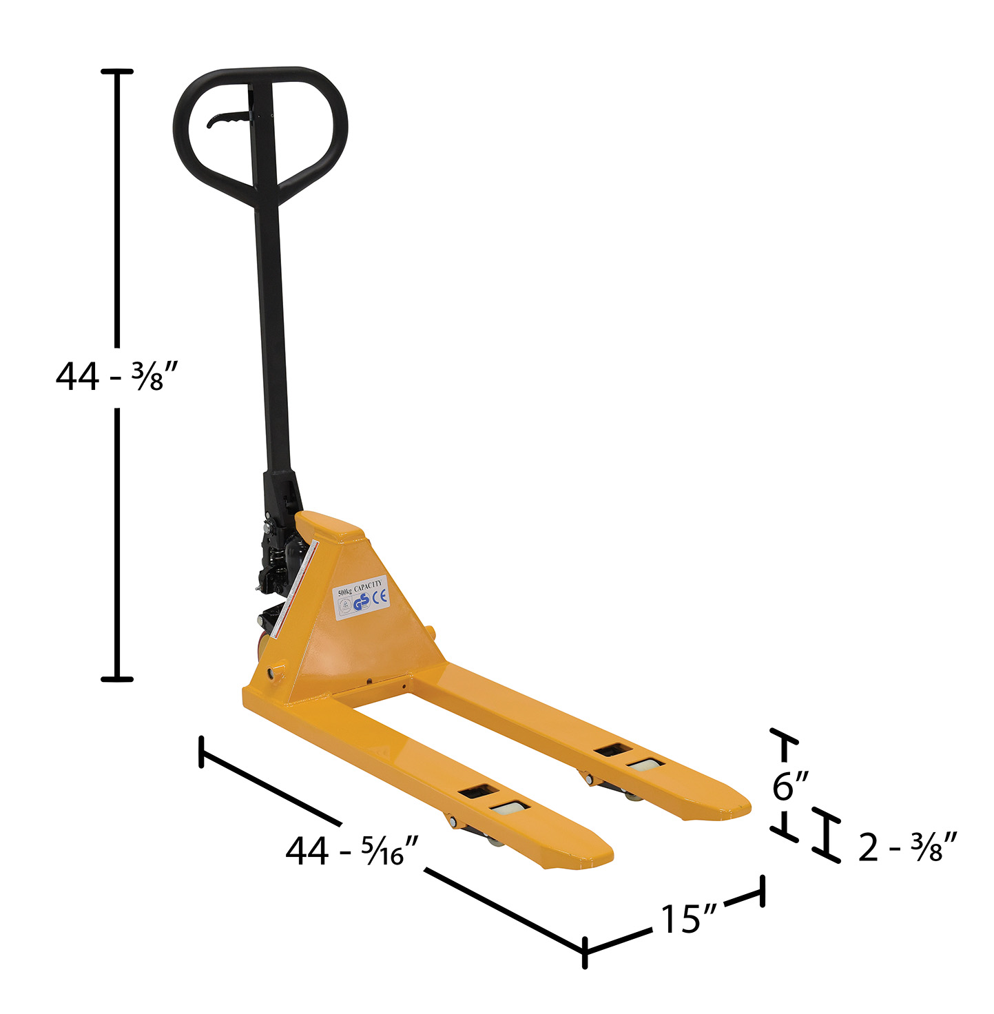 Steel Mini Hand Pallet Truck 45 In. x 15 In. x 45 In. 1100 Lb. Capacity Yellow