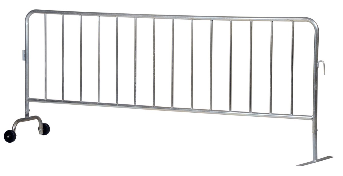 Steel Crowd Control Interlocking Barrier with Feet (1) Wheeled (1) Curved 101-3/16 In. Length Silver
