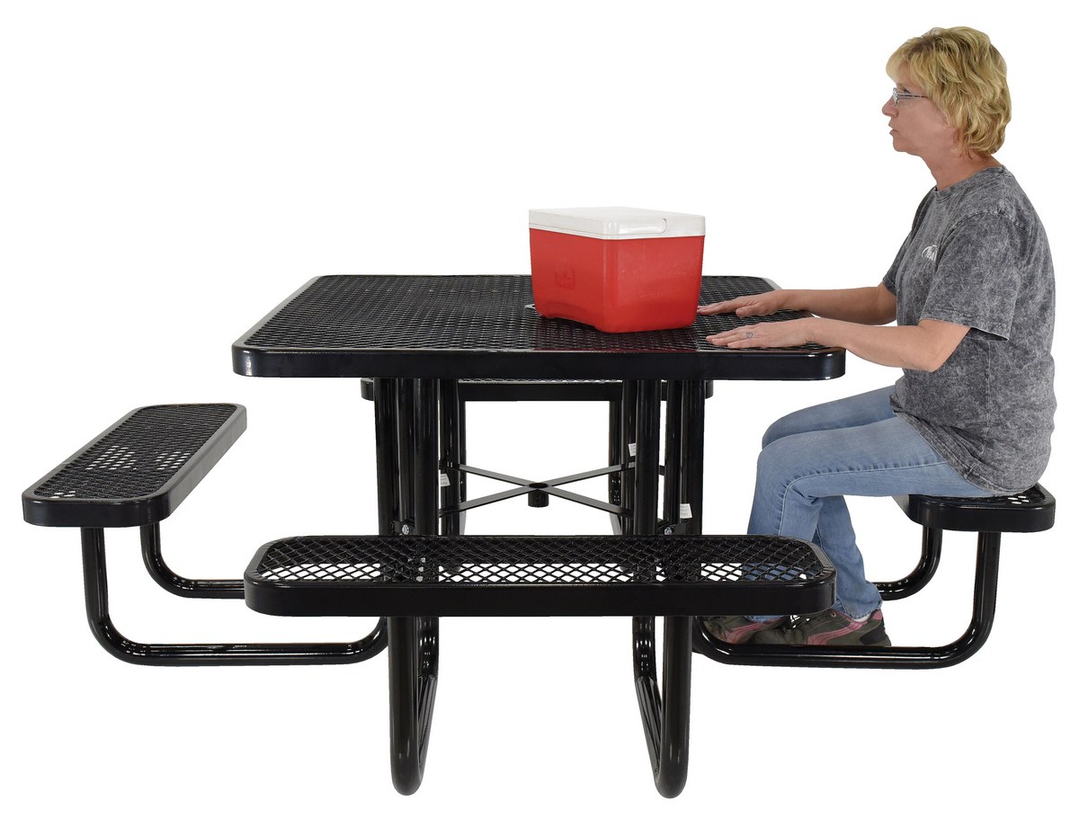 Steel Picnic Table Expanded Metal Square Top 46 In. x 46 In. Black