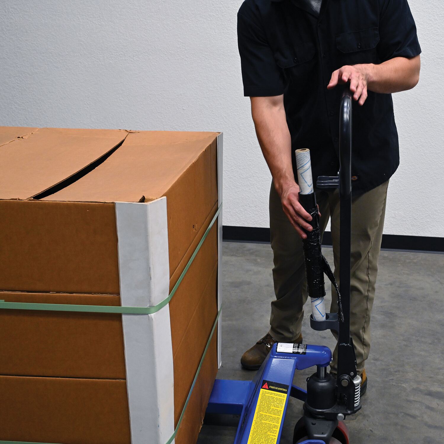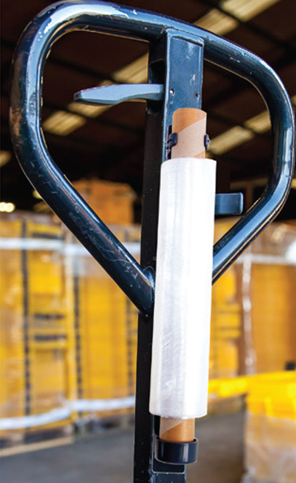 In warehouses stretch wrap is seemingly always required. But, rolls of wrap can often be elusive; gone the second you need it. That's where the stretch wrap caddy comes in! The stretch wrap caddy is built to hold rolls of wrap when your hands are otherwise in use, like driving a pallet truck. The caddy can be attached to the exterior of the pallet truck in any position that fits the users preference and ready for use in a matter of minutes. So stop wasting precious time looking for the roll of stretch wrap and just remember it's in the last place you left it; in the stretch wrap caddy!