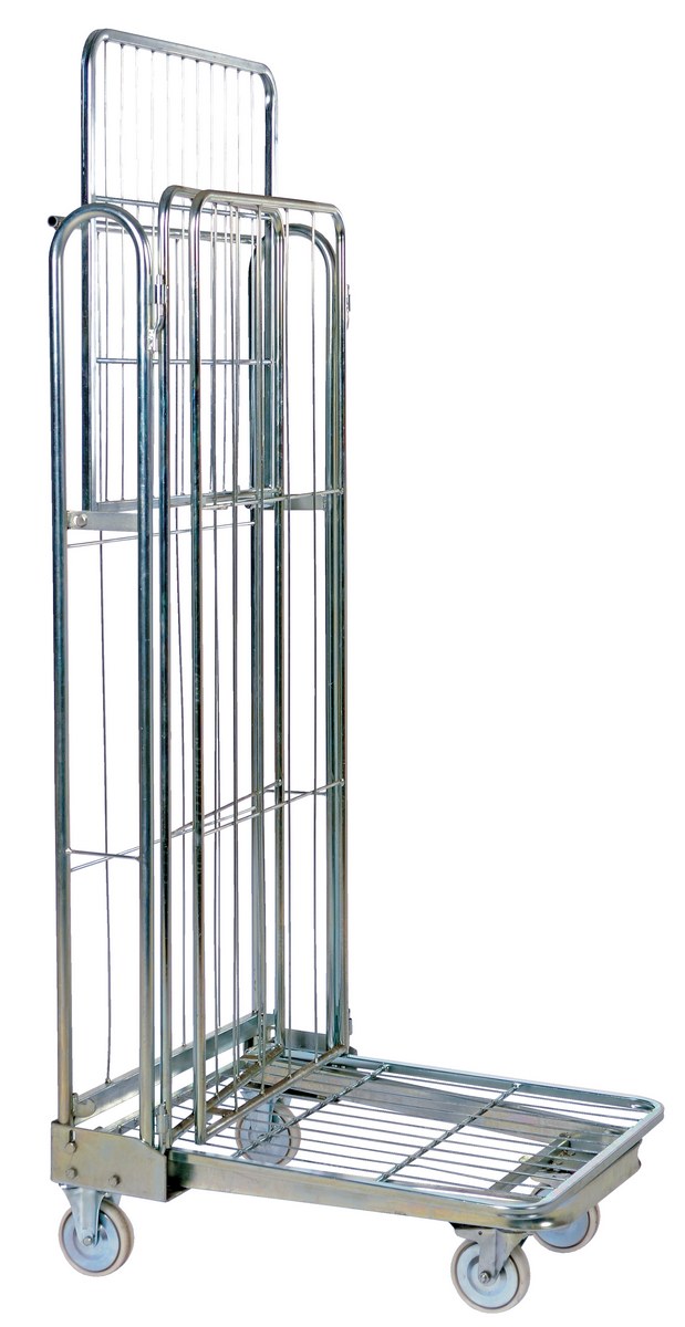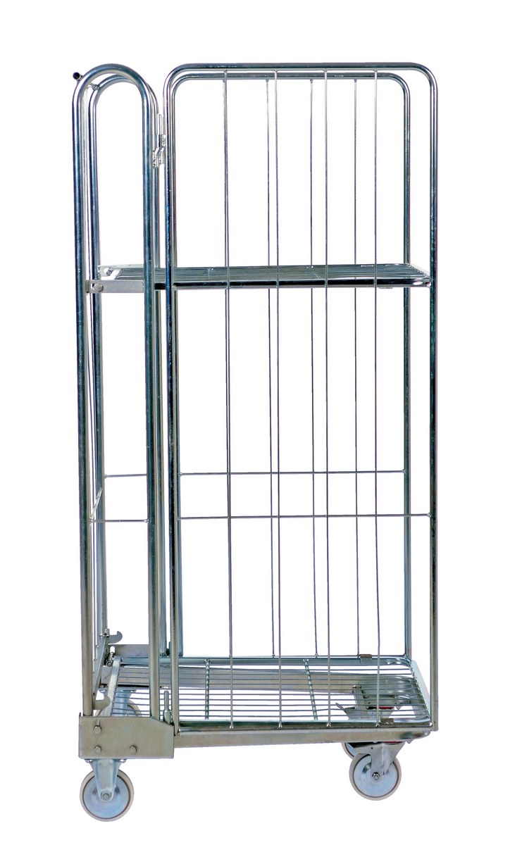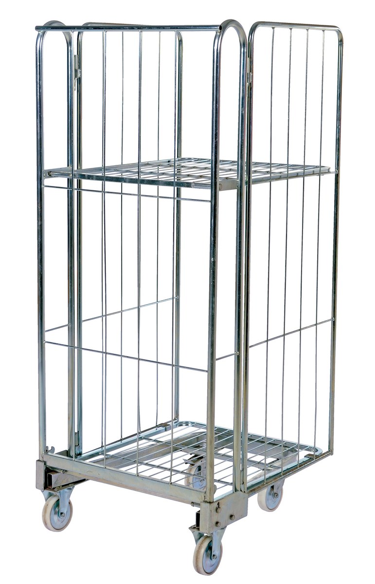 Galvanized Steel Foldable/Nestable Roller Container 2 Shelf 32 In. x 27-1/4 In. x 68-1/4 In. 660 Lb. Capacity Gray