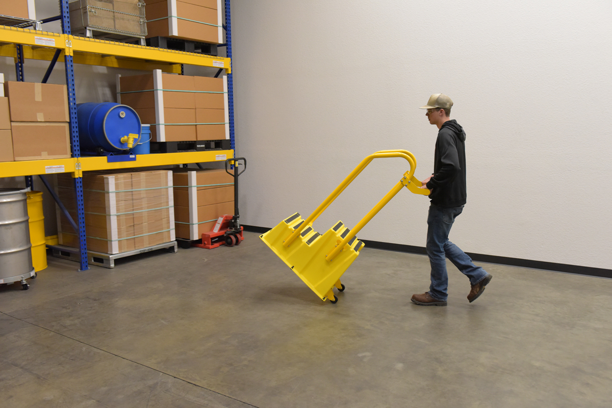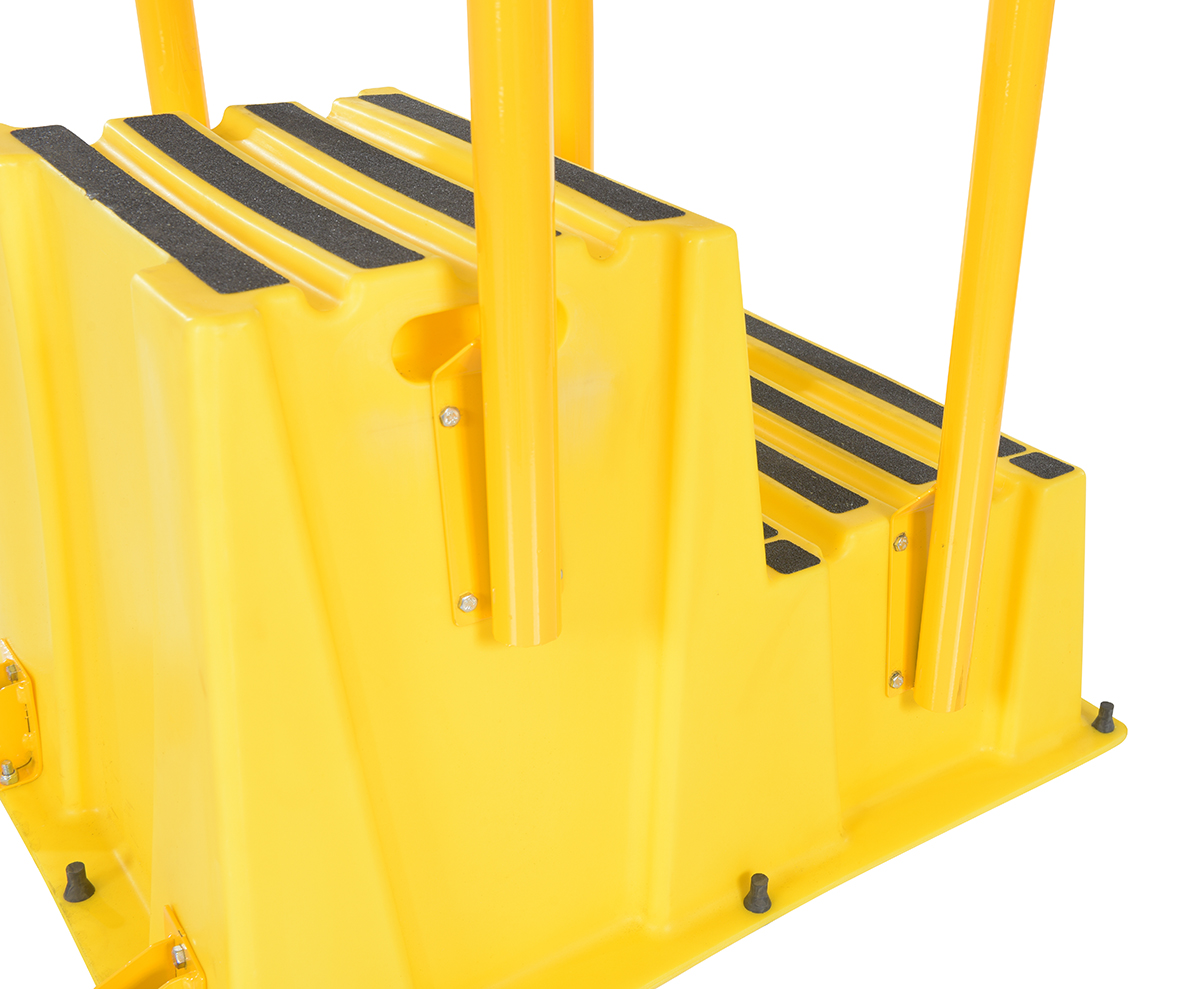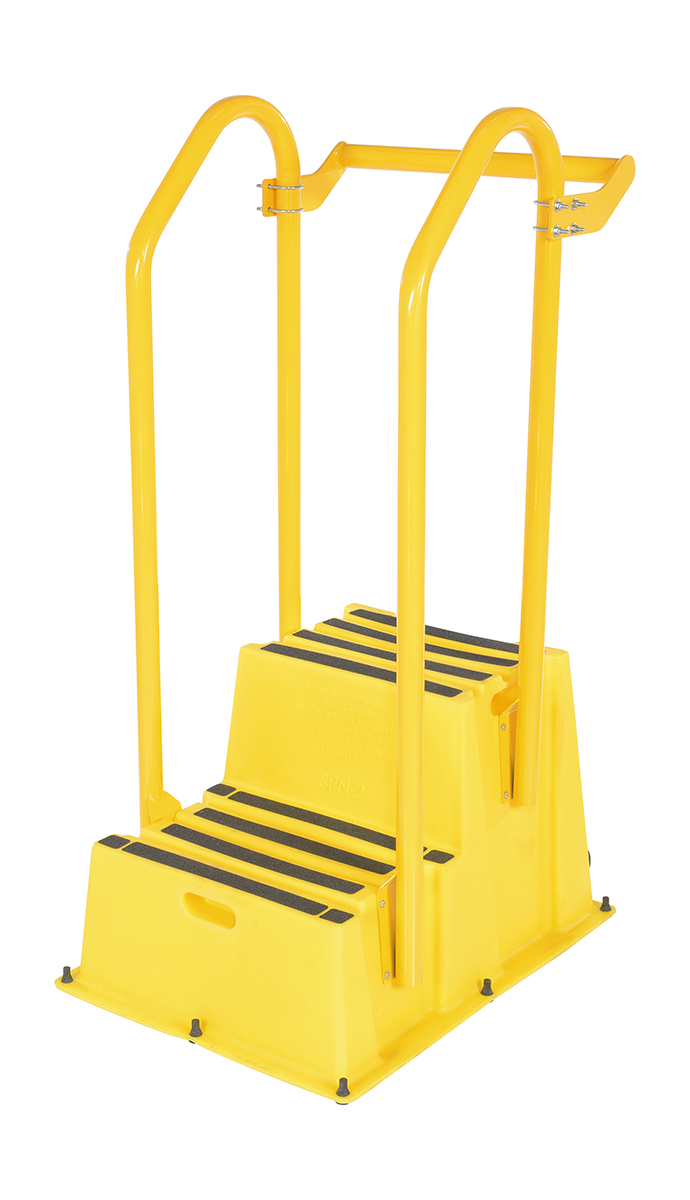 Polyethylene Nestable with Hand and Back Rails Casters 2 Step 500 Lb. Capacity Yellow