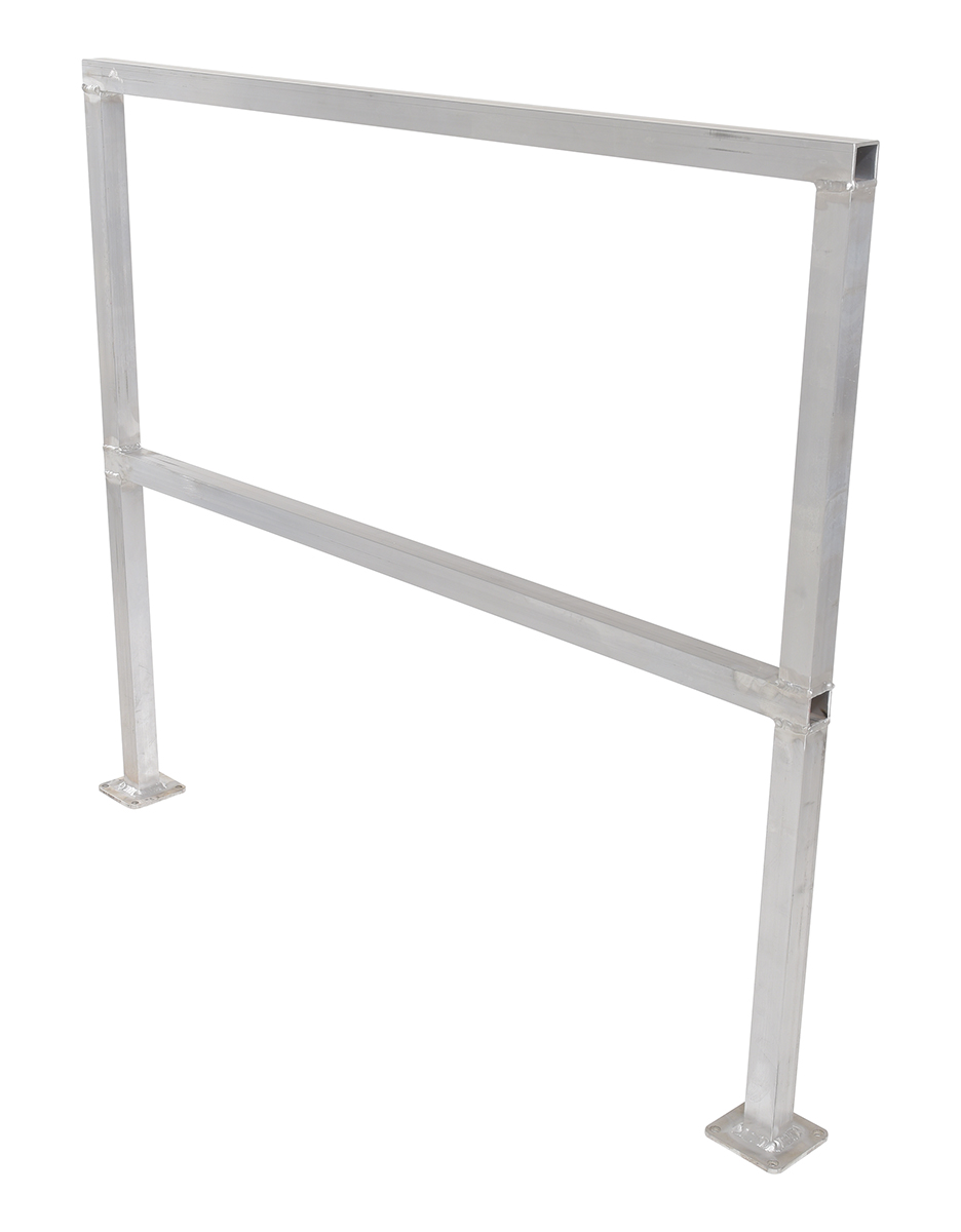 Aluminum Safety Handrail 50-1/2 In. x 4 In. x 42 In. SilverAluminum square safety Handrail provides an economical way to protect people and machinery. Applications include loading docks, floor openings, walkways, and mezzanines. Robust design provides stabilization throughout those areas.