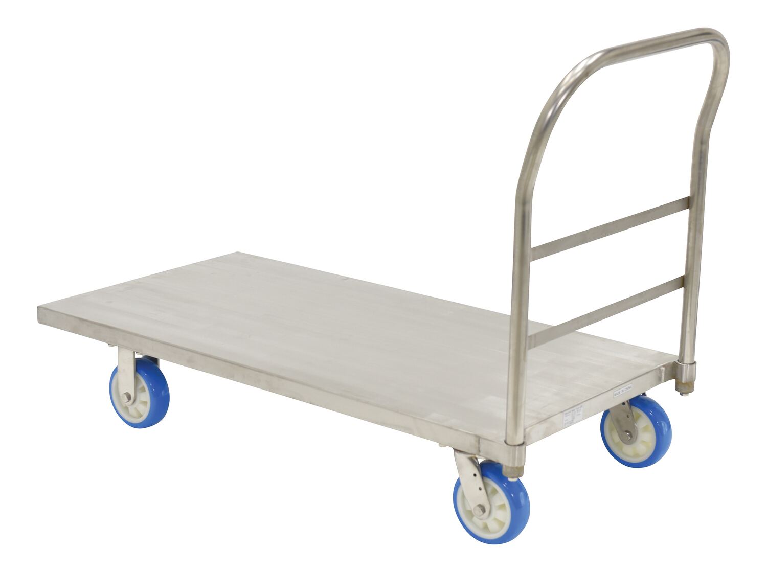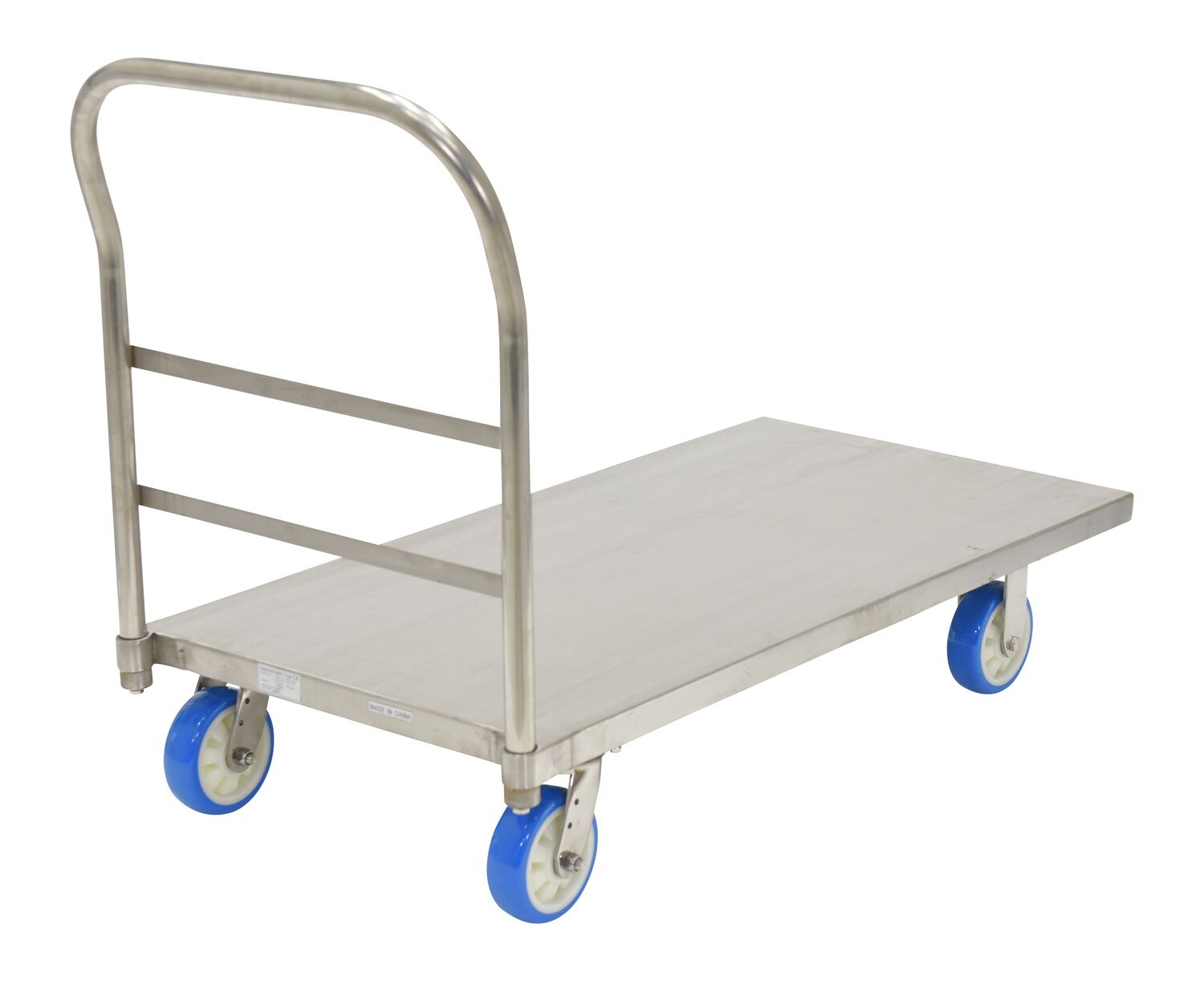 High quality Stainless Steel platform trucks are highly suited for clean room environments, applications with food handling, and pharmaceutical industries. Completely formed from 201 grade stainless steel sheet and tube. Corrosion resistant, non-wearing, temperature resistant, completely hygienic stainless steel roller bearings. 100% Stainless steel platform trucks.