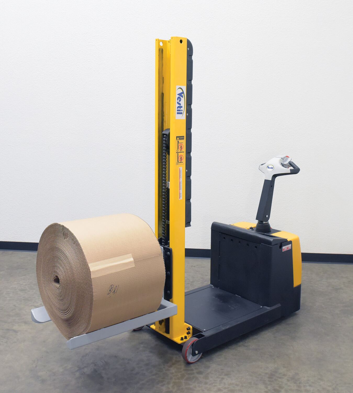 Large rolls can be difficult to maneuver and lift, but with the roll lifter stacker attachment that chore just became a joy! The forks on this attachment are fixed, so there is no hassle of adjusting the fork span before or between loads. With a unique design, the roll sits in a cradle like support system which keeps the roll secure during transport.