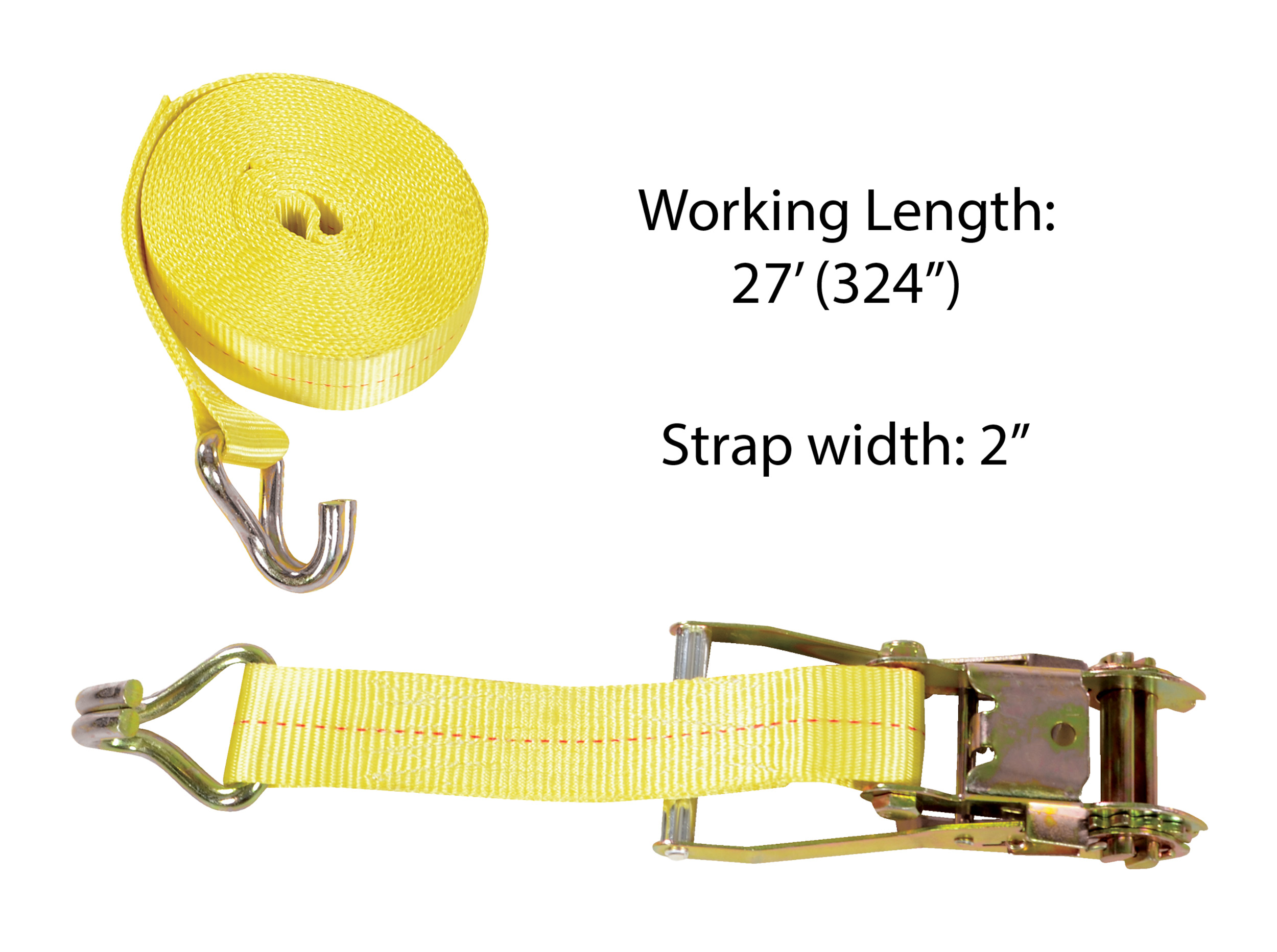 Polyester Ratcheting Cargo Strap with Rod Hook 27 Ft. Working Length 3,325 Lb. Working Load Yellow