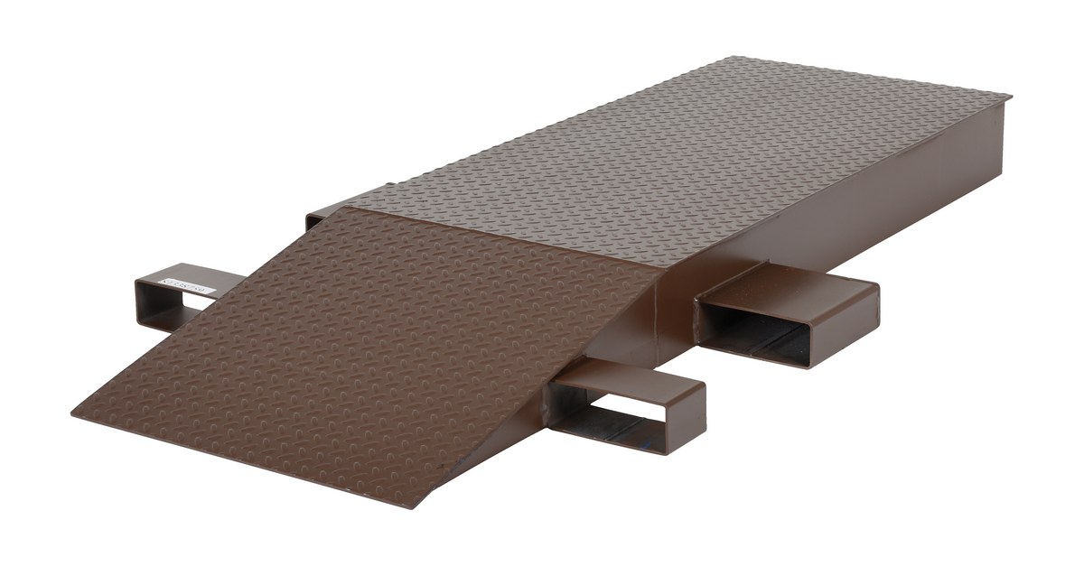 Steel Wheel Riser 72 In. x 24 In. x 6-1/4 In. 40,000 Lb. Capacity BrownWheel risers are designed to raise trailers to an appropriate crossover height for loaded fork trucks. Made of heavy-duty welded steel construction, these wheel risers are built to last! Each riser is equipped with fork pockets for easy transportation wherever a fork truck is available. Ramps may be stacked for convenient storage when not in use. Wheel risers are sold and priced as individual units.