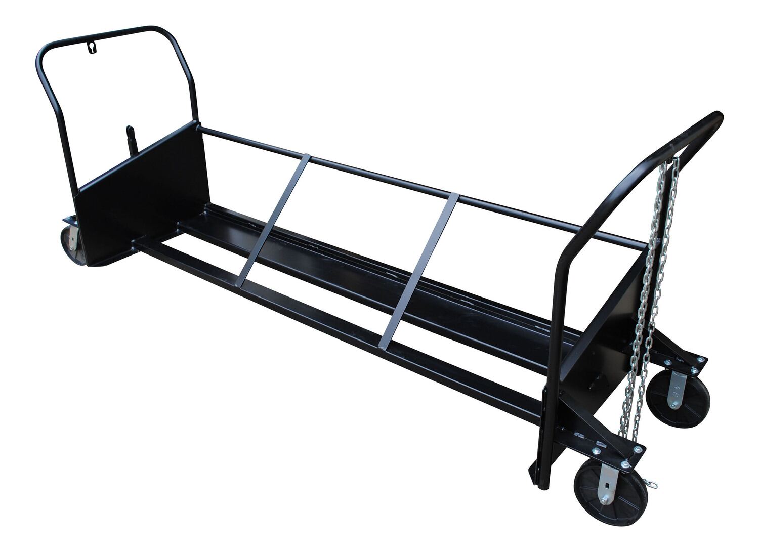 • Hinged tow bar is located at one end for towing by utility vehicles