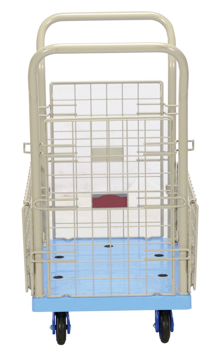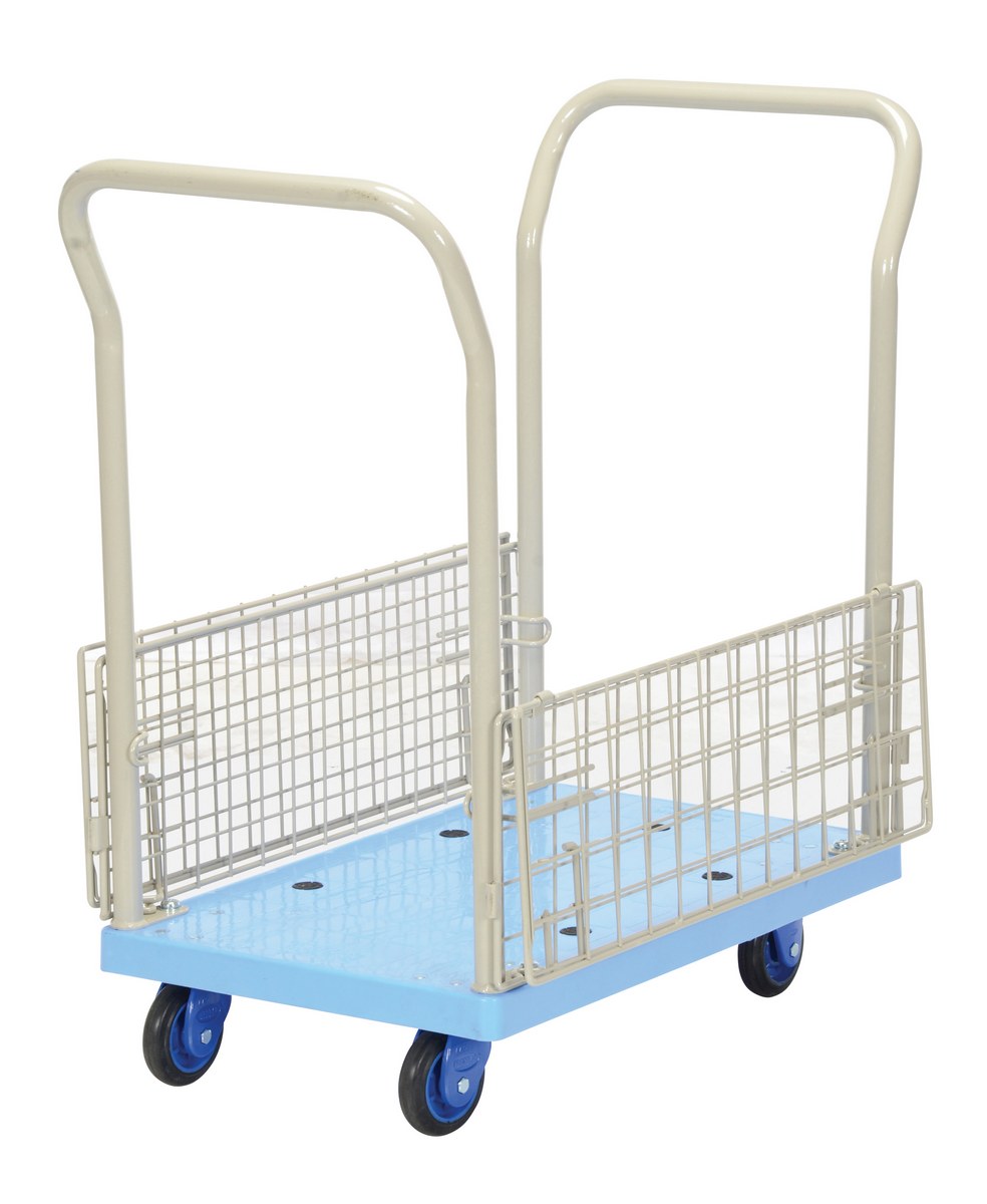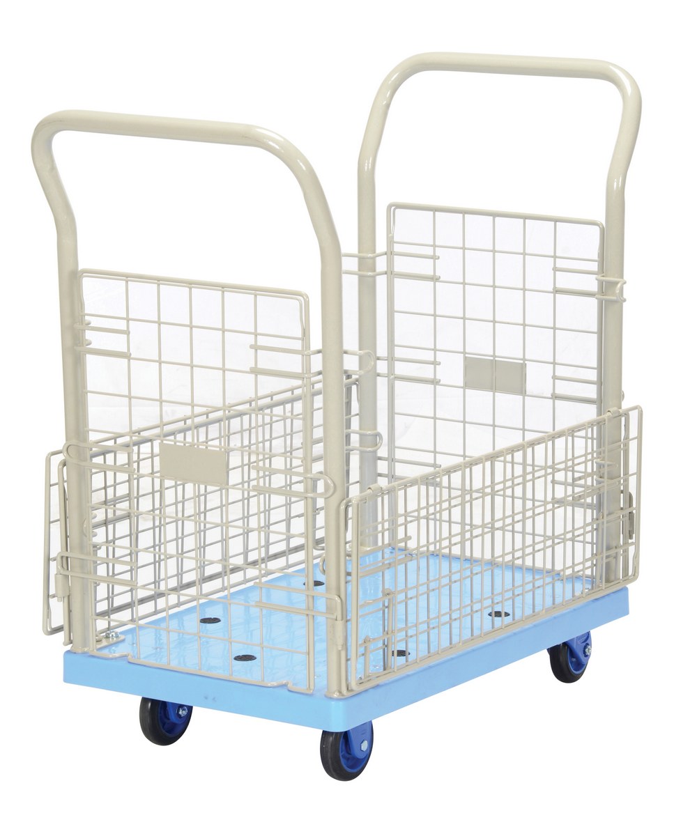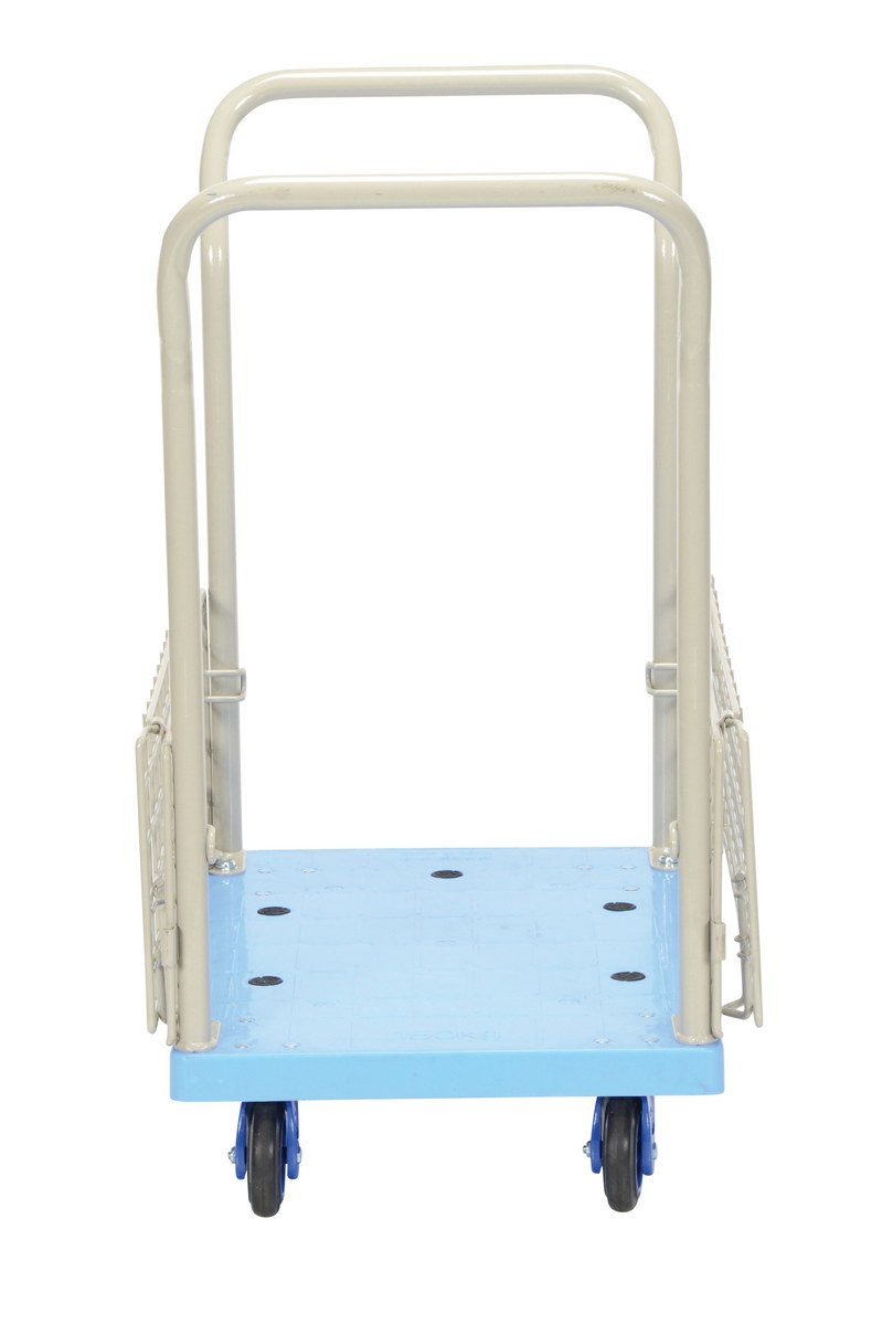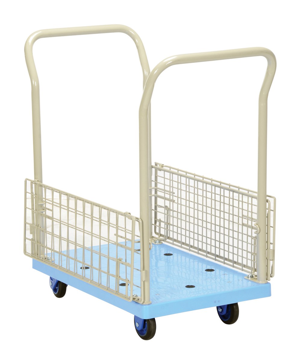 The plastic platform cart is a great addition to the shipping and distributing facilities. The plastic platform creates a durable, yet lightweight construction that can be transferred simply from workstation to workstation. The unit rolls on casters for smooth transference over a variety of terrains, while the side nets enable the utmost security. The attached handle creates a more ergonomic posture of personnel during use.