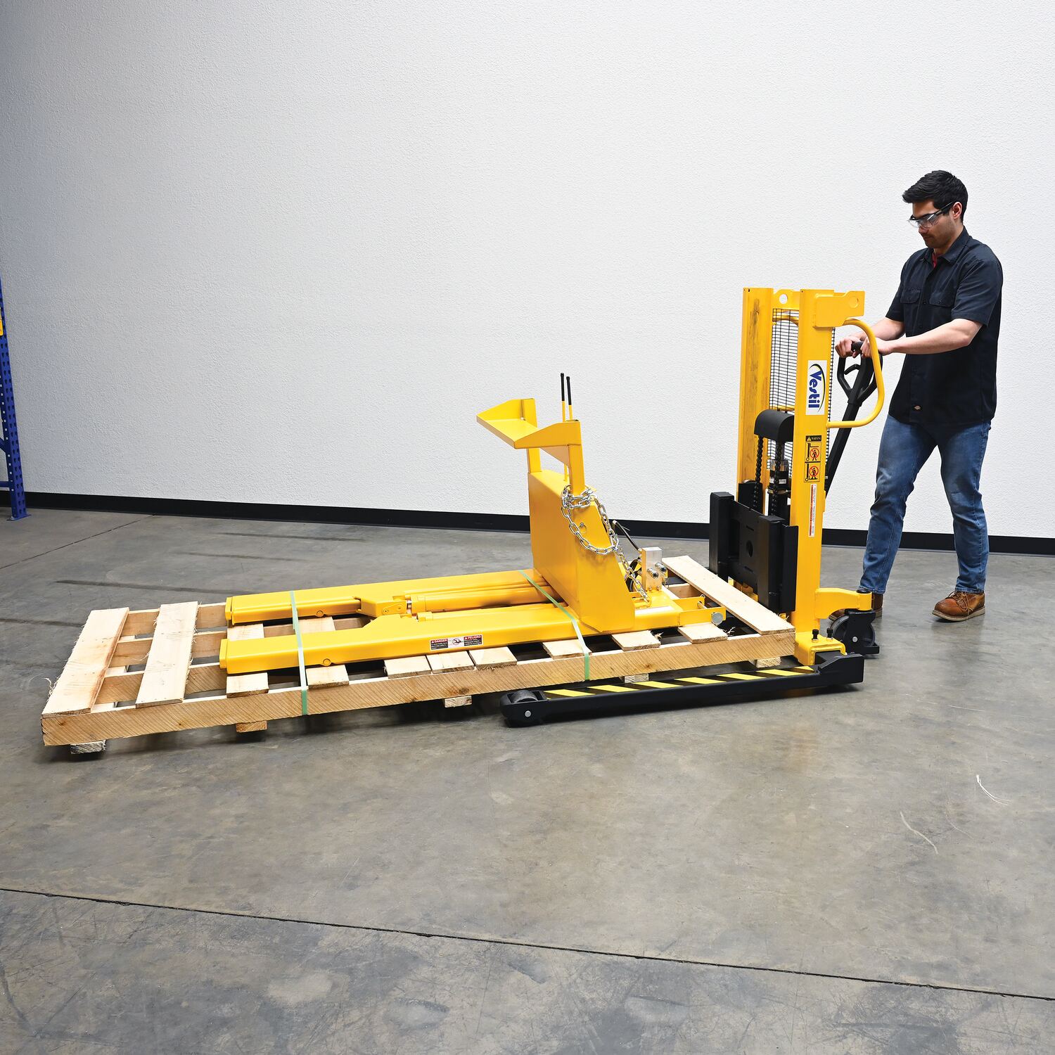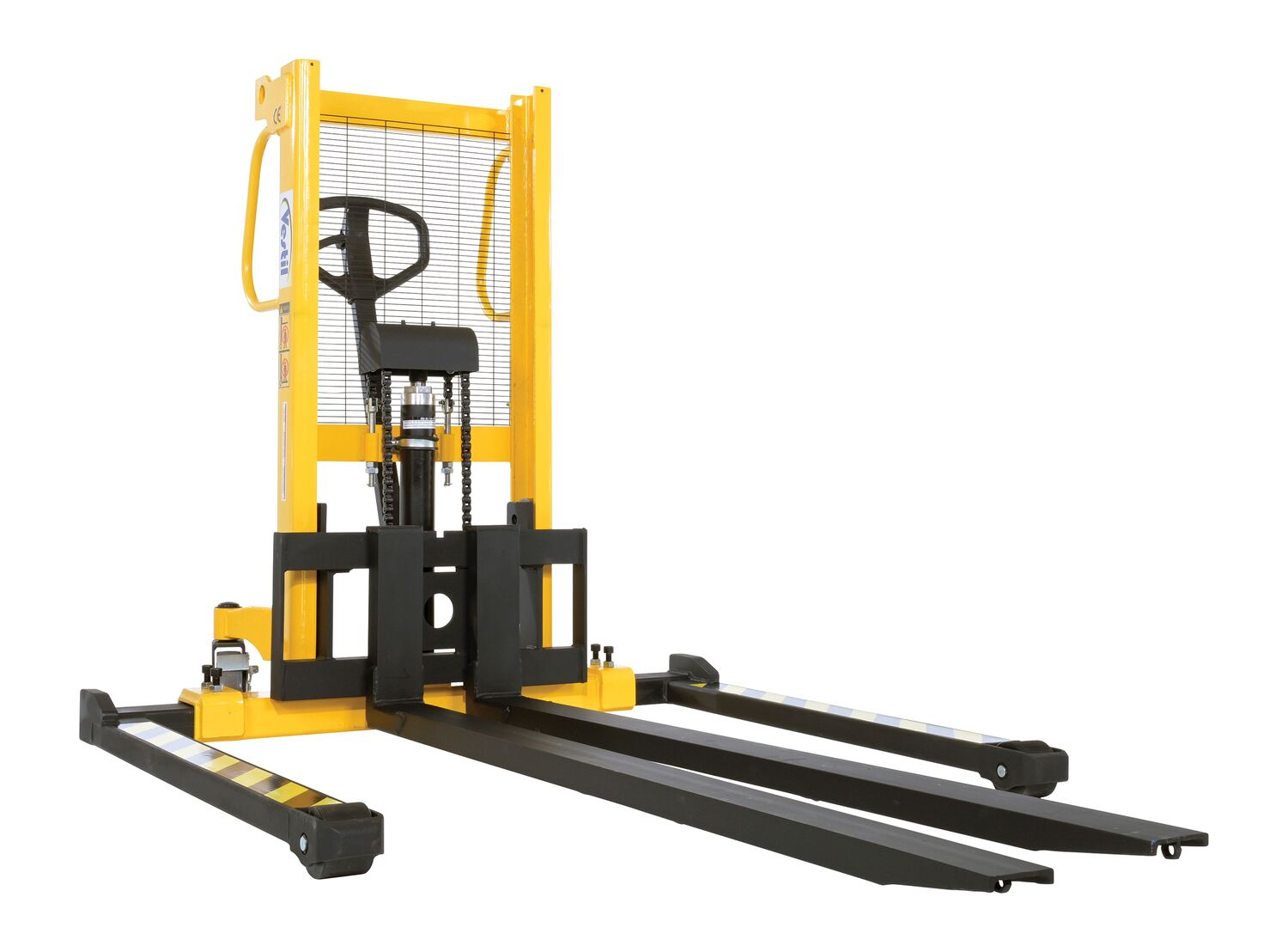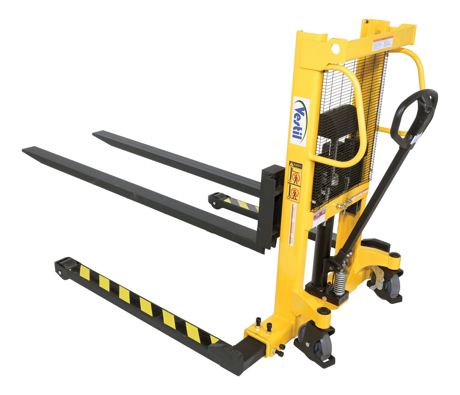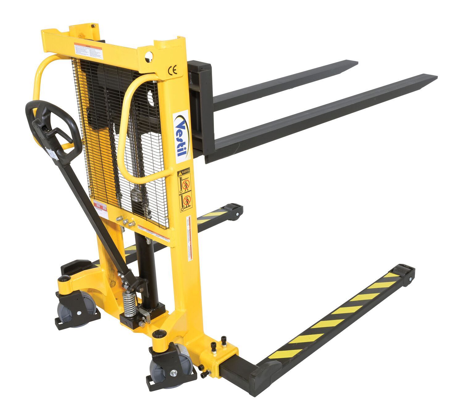Steel Manual Stacker Adjustable Forks/Legs 550 Lb. Capacity Black / Yellow