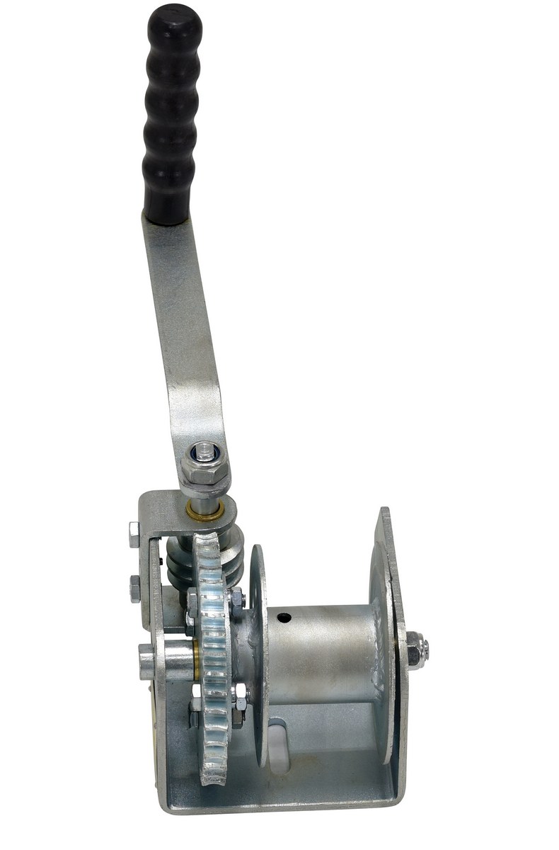 Steel Single Wall Mounted Hand Winch 1500 Lb. Capacity SilverIndustrial winches are pulling devices that use a wire, rope or cable to move heavy loads. This single wall mounted hand winch is constructed of steel worm gear drives with zinc plated finish. Pinion gear shaft with lubricated down bushings provide smooth operation and long life. Available in single or dual drum models.